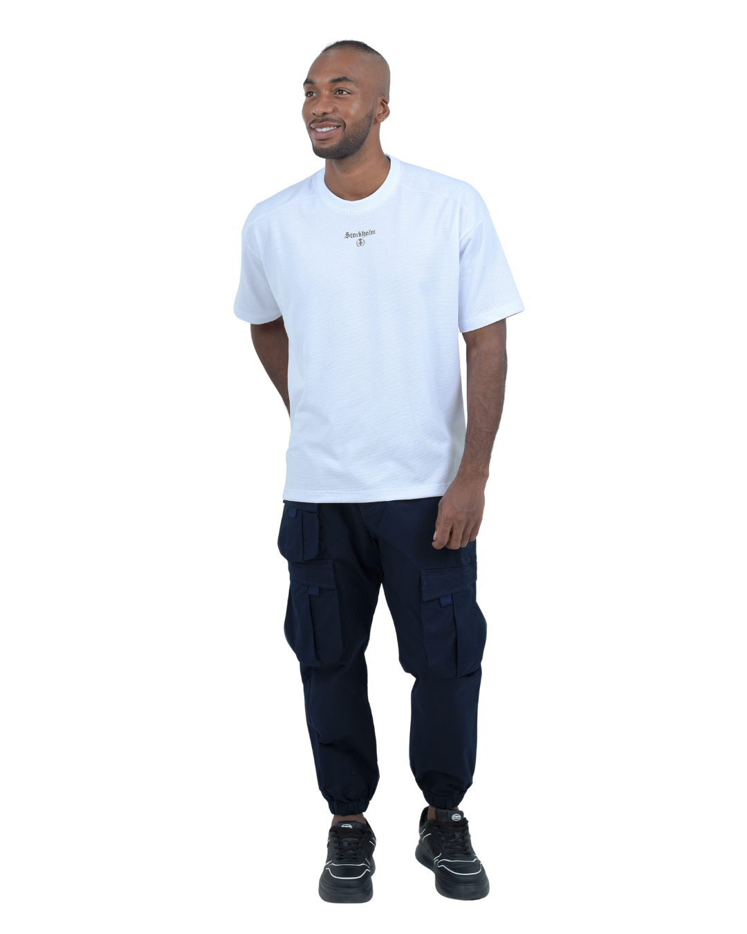 Pantalón cargo para hombre, una prenda clásica llevado a lo moderno presenta cortes, repises y bolsillos en los muslos que hacen contraste con la prenda, luce marquilla bandera uno de sus bolsillos y marquilla BLUE INC en el bolsillo trasero.