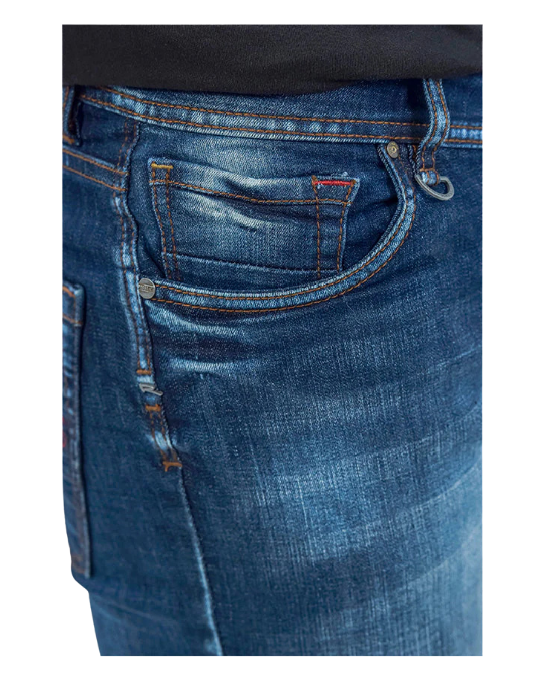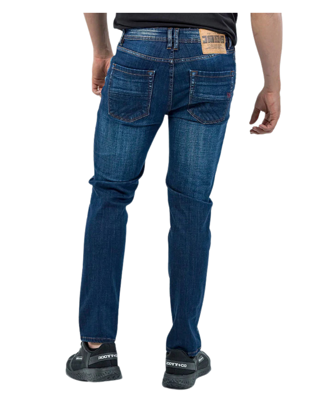 Los Jeans Booth Cambridge son una prenda con molde clásico de corte holgado con una silueta más amplia en la pierna y bota, luce bolsillo para monedas con marquilla ROOTT+CO, líneas pespunteadas y redondeadas de los bolsillos están reforzadas.